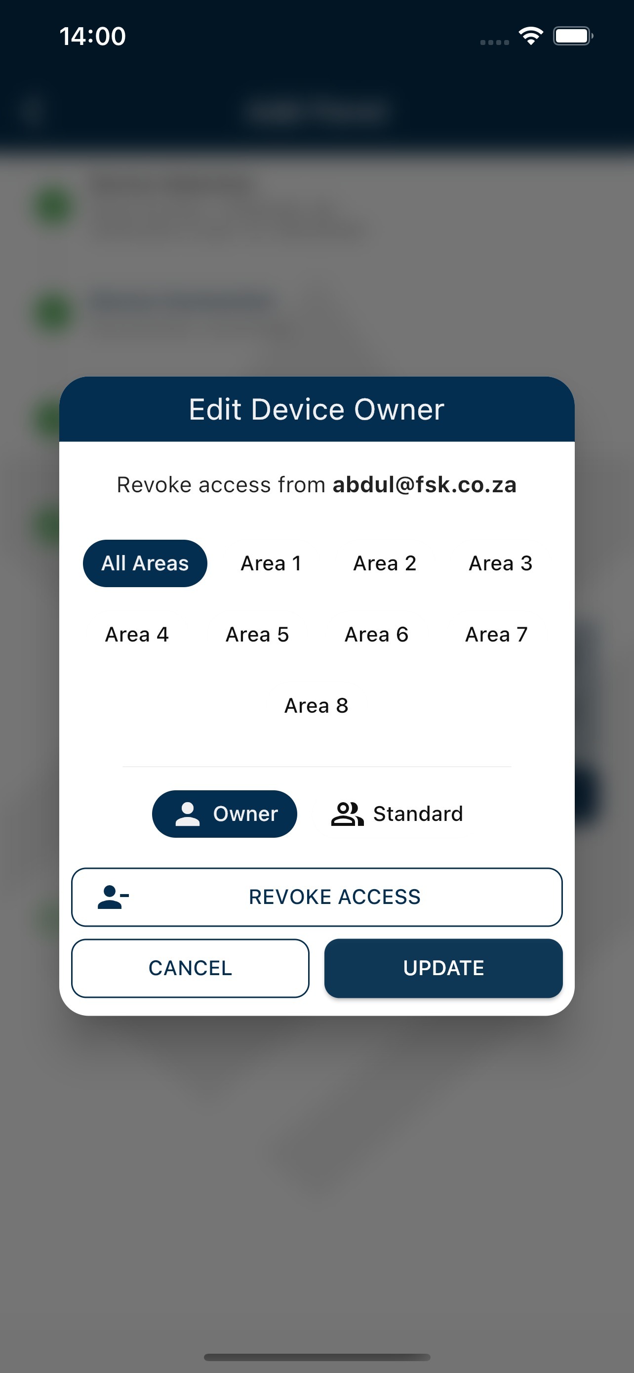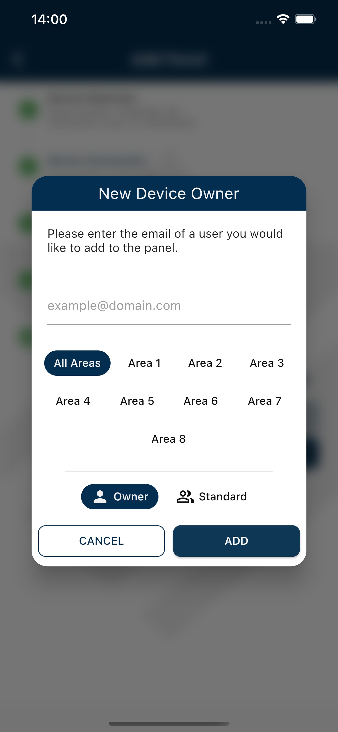 Tap the Plus to add new users. Enter their email address, select the partition access and their role (Owner/Standard). If they are not registered, enter their mobile number as well to invite them to use ArmME.
