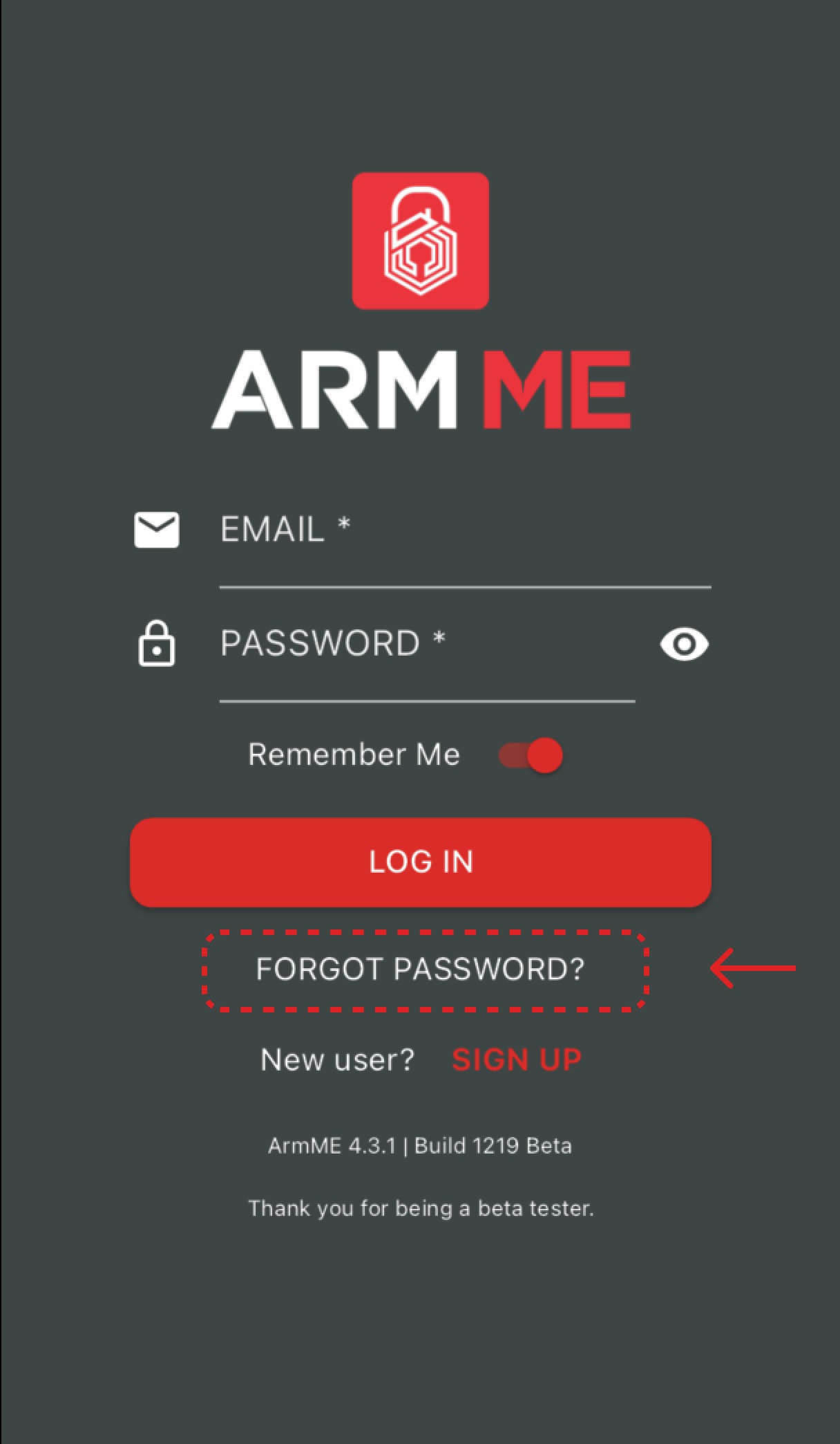 1. Click on FORGOT PASSWORD on the login screen.