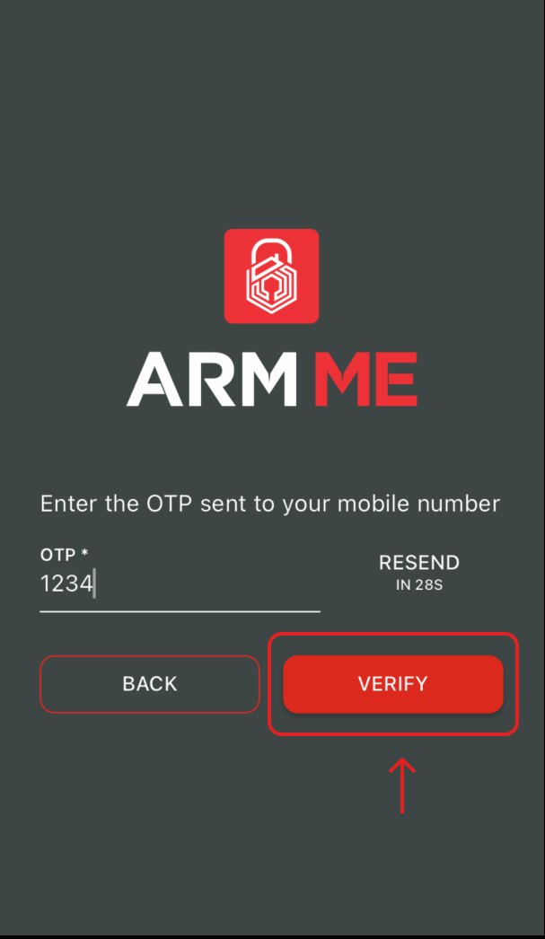 6. Back to the security app, enter the OTP and click VERIFY.