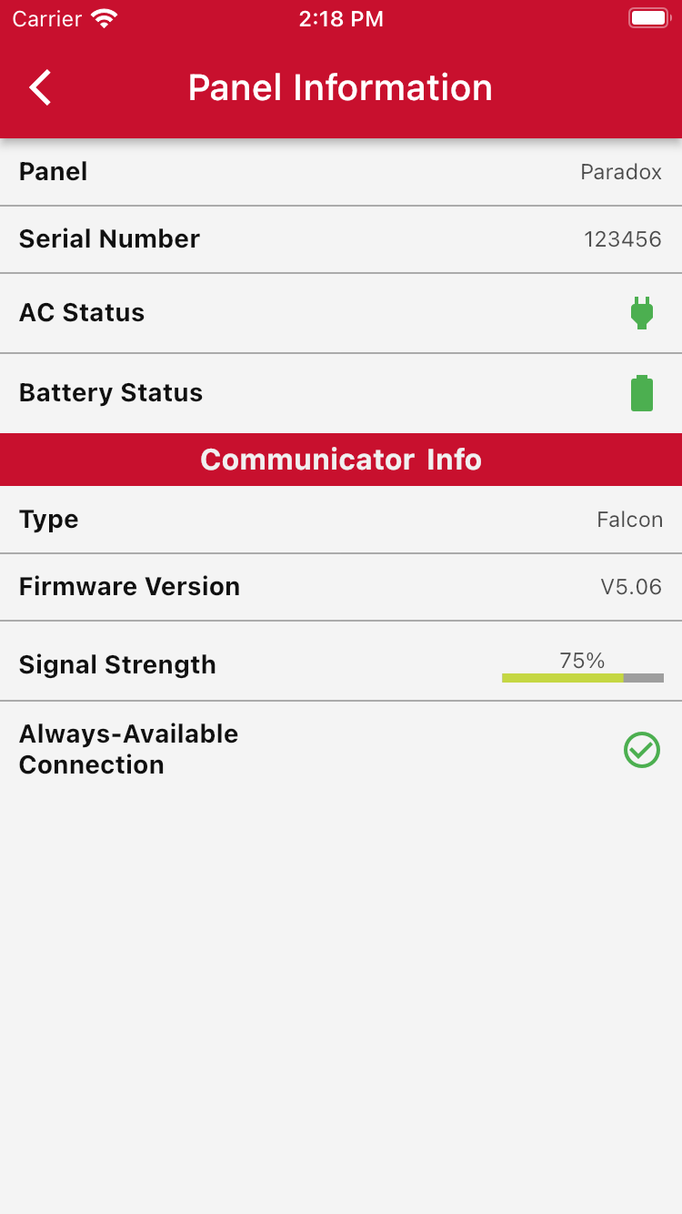 Here, you can see various information about your panel.