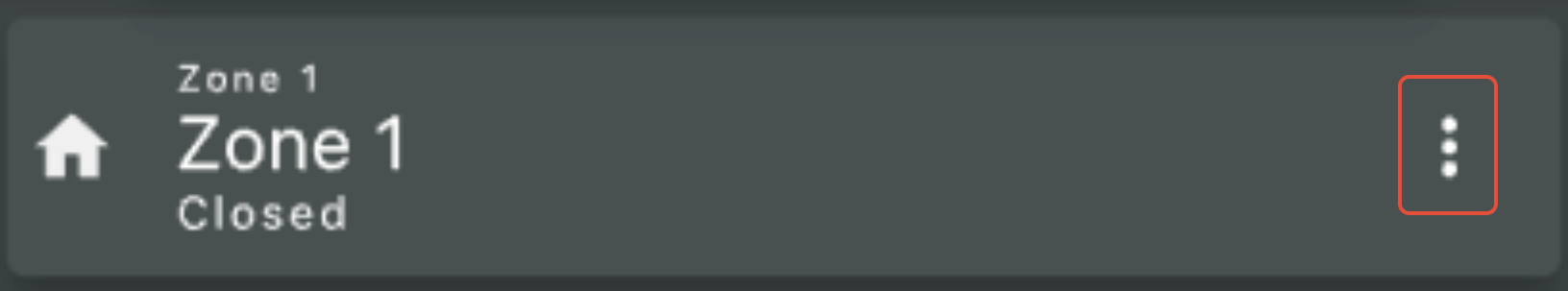 An unhidden zone will present normally and display the current Zone Status.