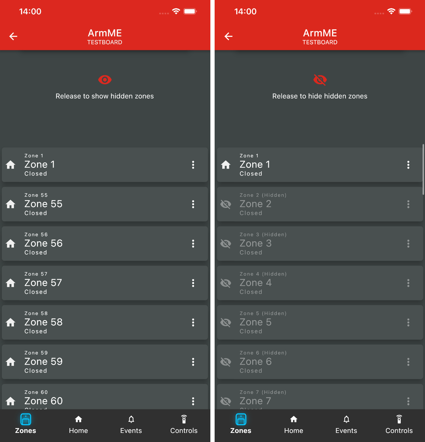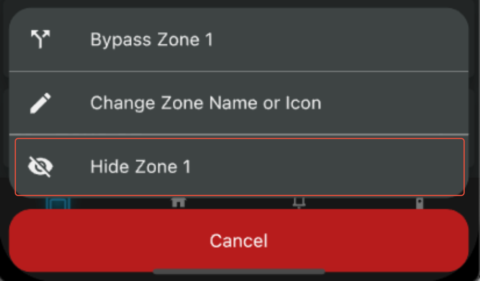 Unused zones can now be hidden inside the security app.