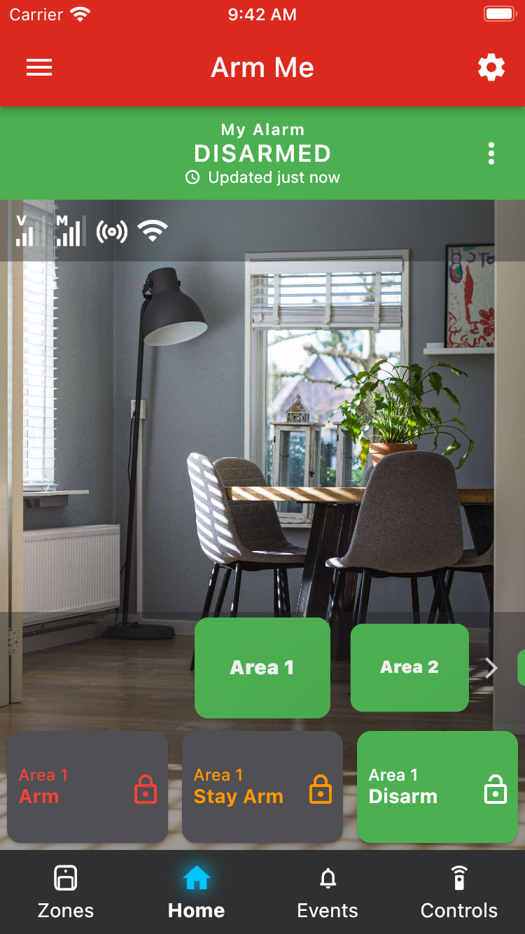 Each area can be armed or disarmed individually and have different zones linked to them. To learn how to arm and disarm an area from the security app, click here.