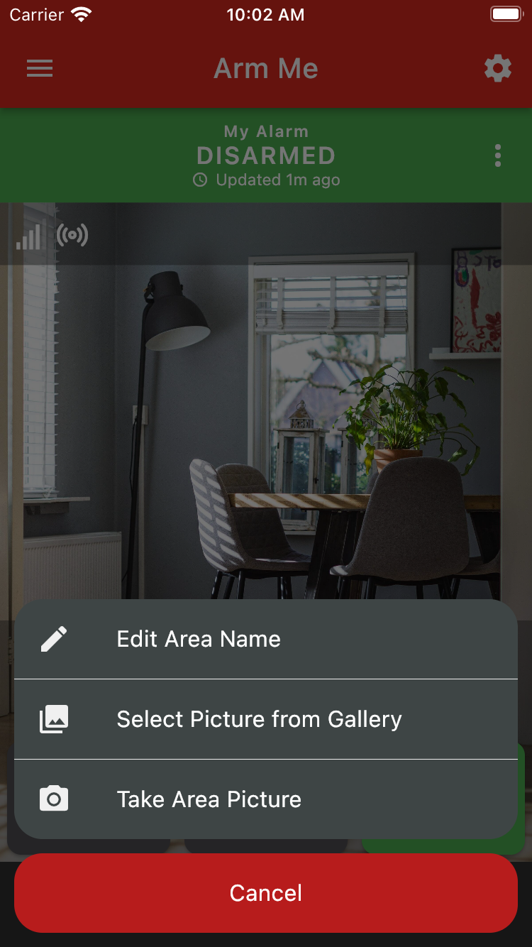 To change your area's name or image, press on the vertical three dots on the Area (Home) screen.