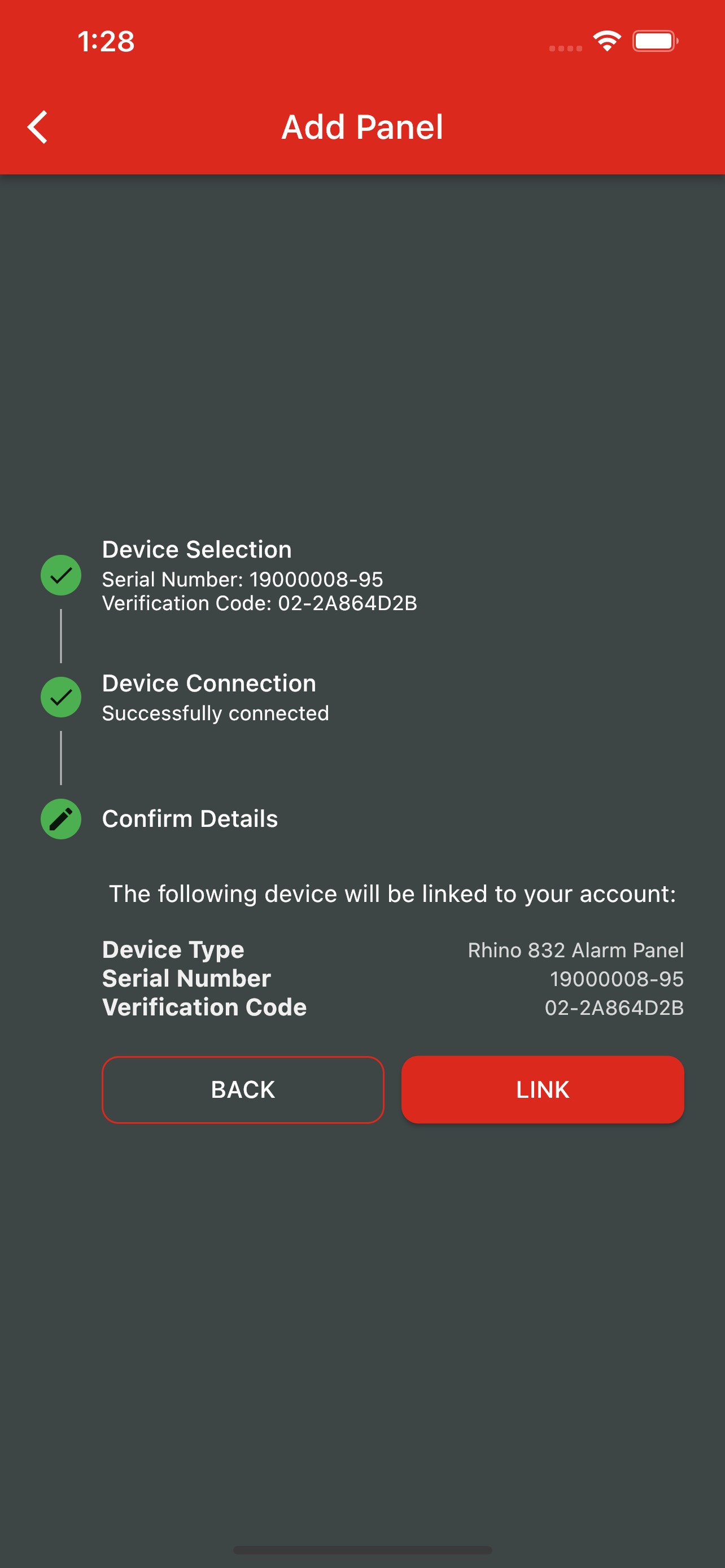 7. Verify the details of the device that you are linking and tap Link to continue.