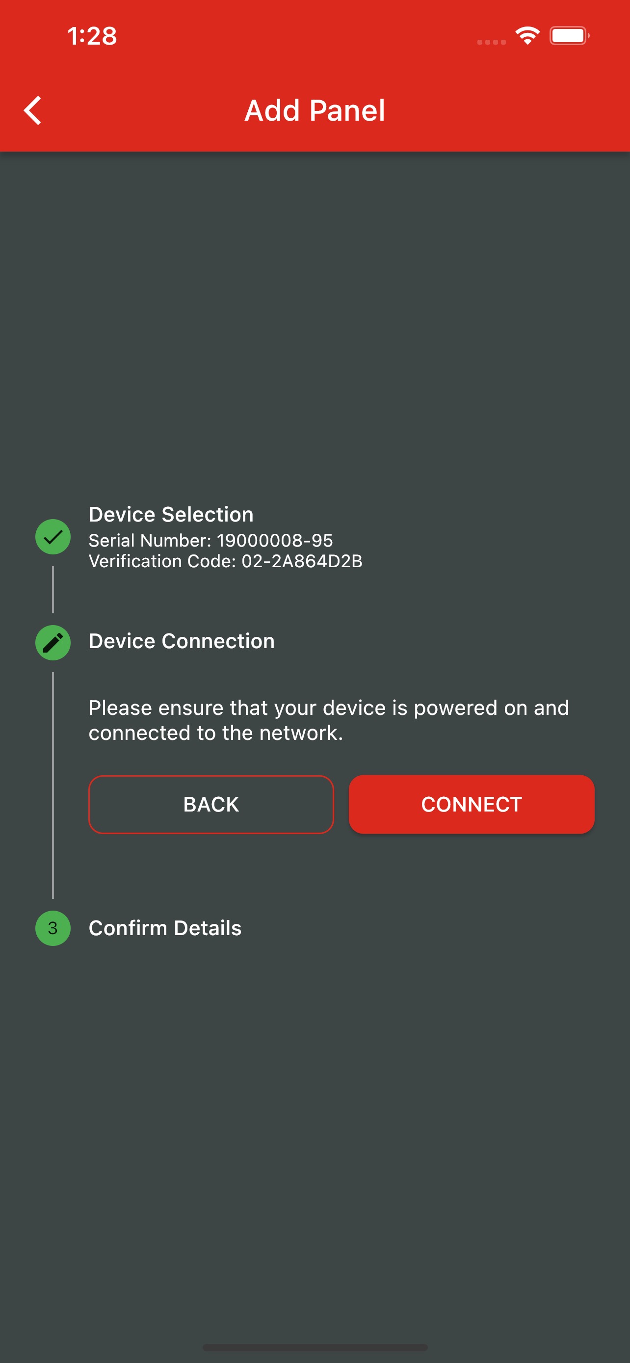 8. Please wait until the process completes. The panel will then be linked to your account and loaded into the app correctly.