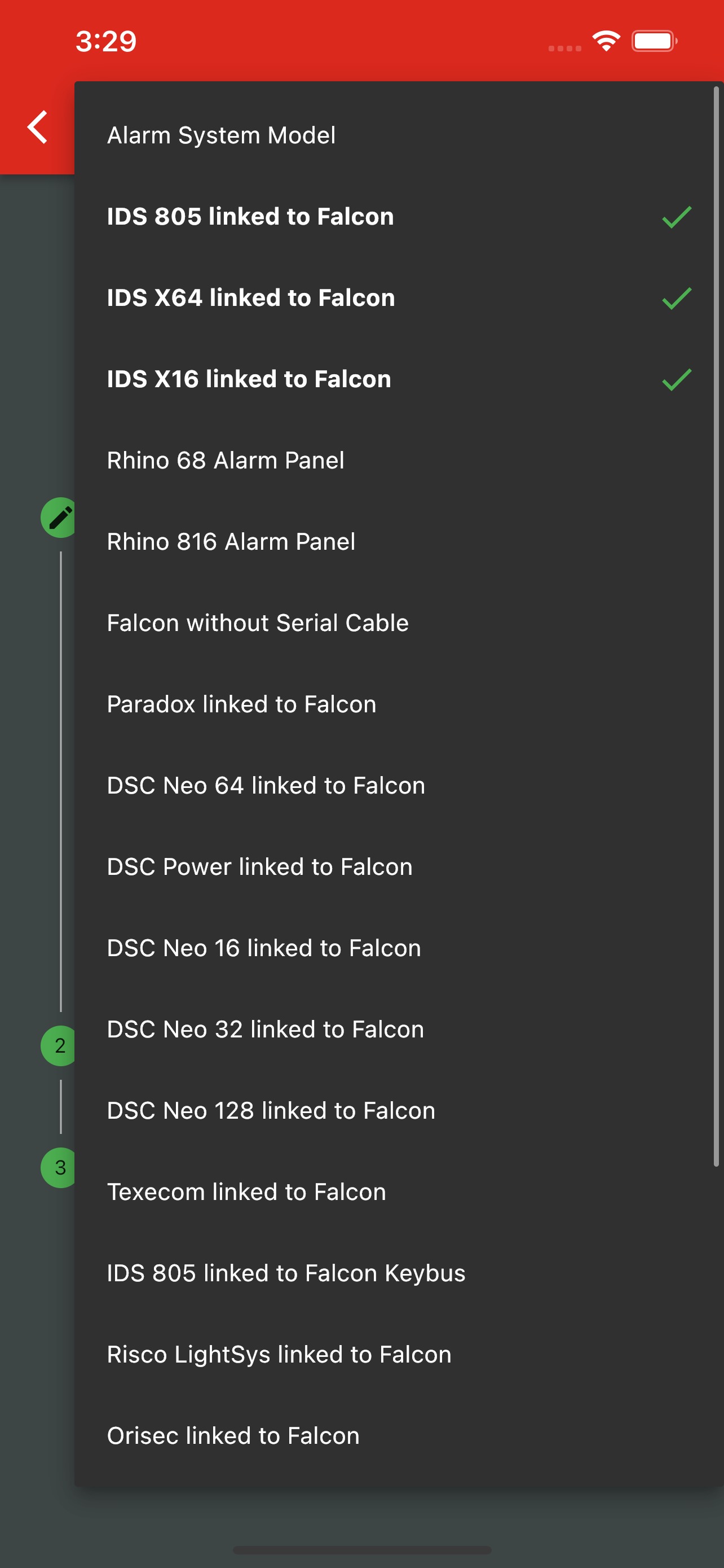 Recommended panels are marked with a green tick, based on any previous configurations. However, you may choose from any of the supported panels in the drop-down list.